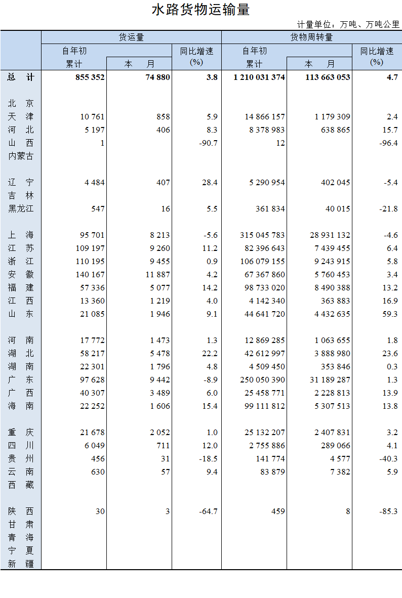 2022年12月水路货物运输量