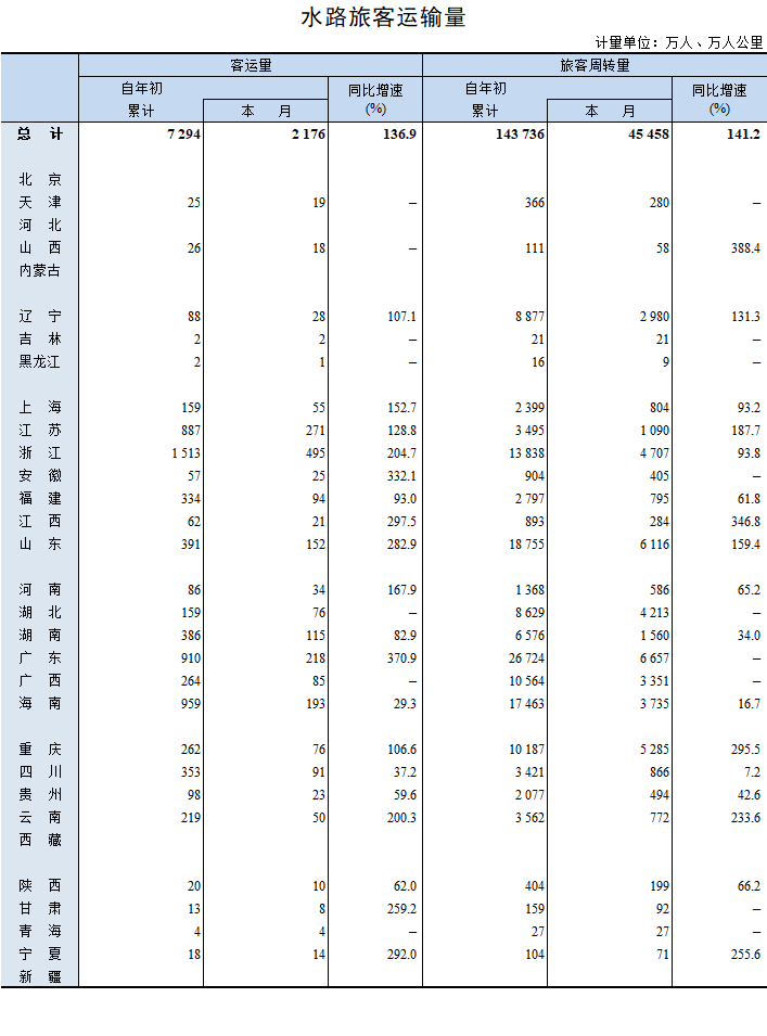 2023年4月水路旅客运输量