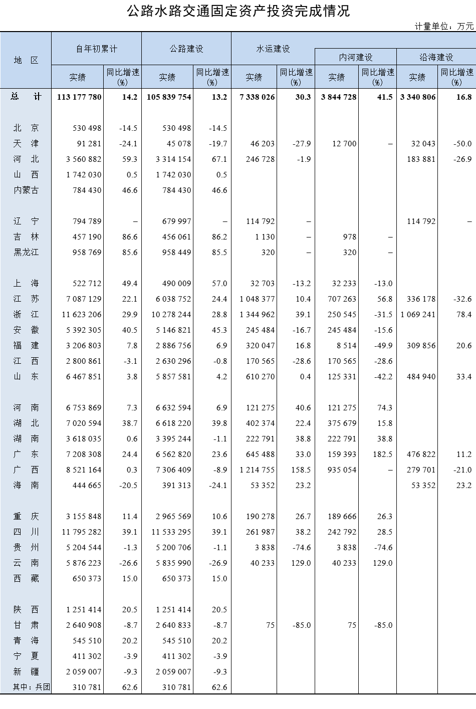 上一篇:2023年1-6月公路水路交通固定资产投资完成情况