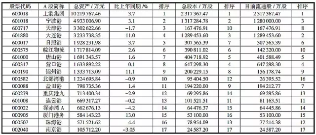 截至2016年6月30日,A股市场港口航运行业上市公司共有30家,其中市值超过千亿的有1家,上港集团以1181.86亿元市值排名港口航运行业上市公司市值第一。2016年上半年,上港集团更以154.16亿元和29.17亿元分获营业收入和净利润的排名榜首。