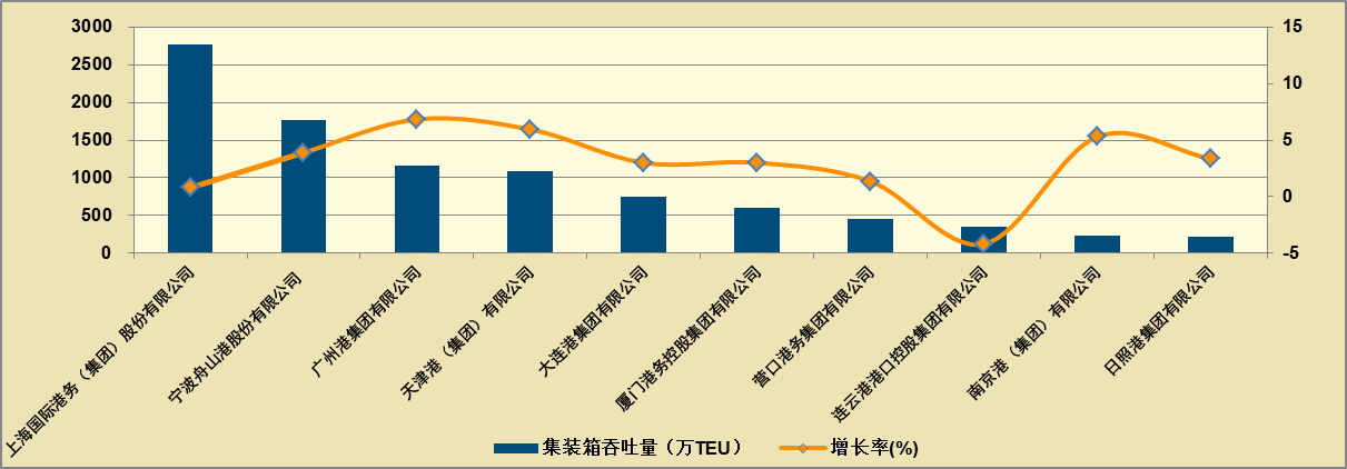 图4 1-9月份主要港口企业集装箱吞吐量排名及增速