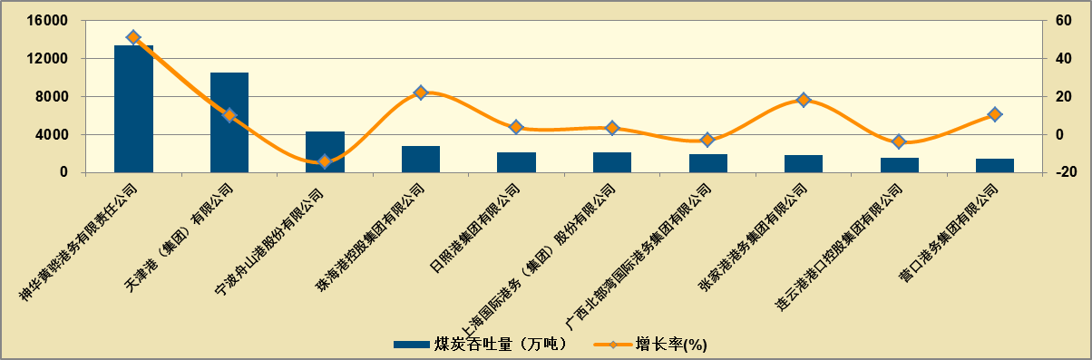图6 1-9月份主要港口企业煤炭吞吐量排名及增速