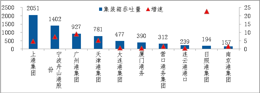 2、集装箱吞吐量较快增长