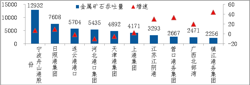 4、金属矿石吞吐量继续保持较快增长
