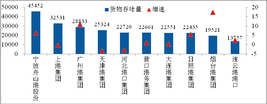 图1 2018年1-7月港口企业货物吞吐量排名及增长情况