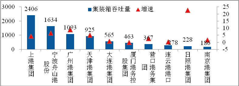 7月份,主要港口企业完成集装箱吞吐量1403万TEU,同比增长3.9%,增速较上月放慢2.8个百分点。1-7月份,主要港口企业累计完成集装箱吞吐量9406万TEU,同比增长5.9%。尤其是日照港集团集装箱吞吐量高速增长。