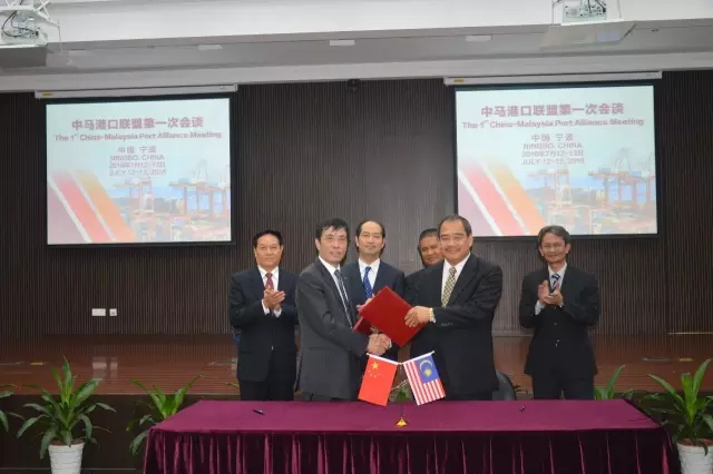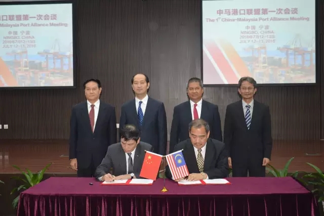 为落实2015年11月中马两国交通部长在两国总理见证下签署的港口联盟谅解备忘录精神,我国交通运输部与马来西亚交通部和全体港口联盟单位于2016年7月13日在宁波举行了以携手开创中马港口合作新局面为主题的中马港口联盟首次会谈。中方港口联盟由大连、太仓、福州、厦门、广州、深圳、海口、北部湾港口行政管理部门和上海、宁波舟山港集团等10家单位组成,马方港口联盟由巴生、马六甲、槟城、关丹、柔佛、民都鲁等6个港务局组成。