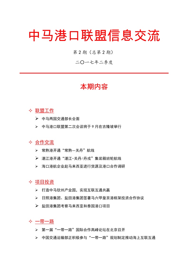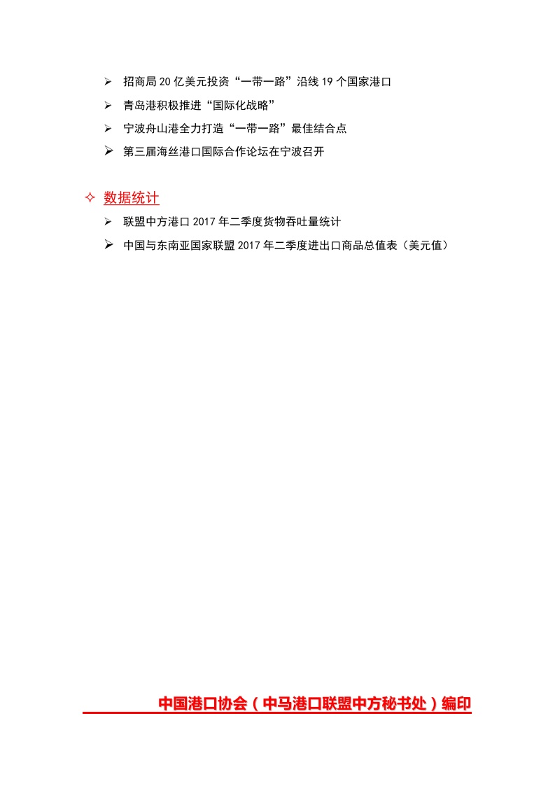 上一篇:2017年7月份中马港口联盟港口客货吞吐量统计