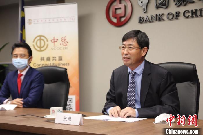 张敏(右)在签约仪式上致辞 马来西亚中国银行供图