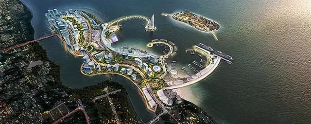 据介绍,马六甲皇京港项目(Melaka Gateway)是一个大型的填海综合发展项目,属于马来西亚国家级二号工程,由三个人造岛和一个自然岛屿组成,占地1366英亩,总投入400亿林吉特(约800亿人民币)。按照规划,第一岛将建造旅游、文化遗产及娱乐区;第二岛将建成物流中心、金融、商业、补给与高科技工业区;第三岛为综合深水码头及高科技海洋工业园;第四岛则为码头、临海工业园。预计其深水港项目将于2019年完成,超越新加坡成为马六甲海峡上最大的港口,而全部配套工程将于2025年竣工。
