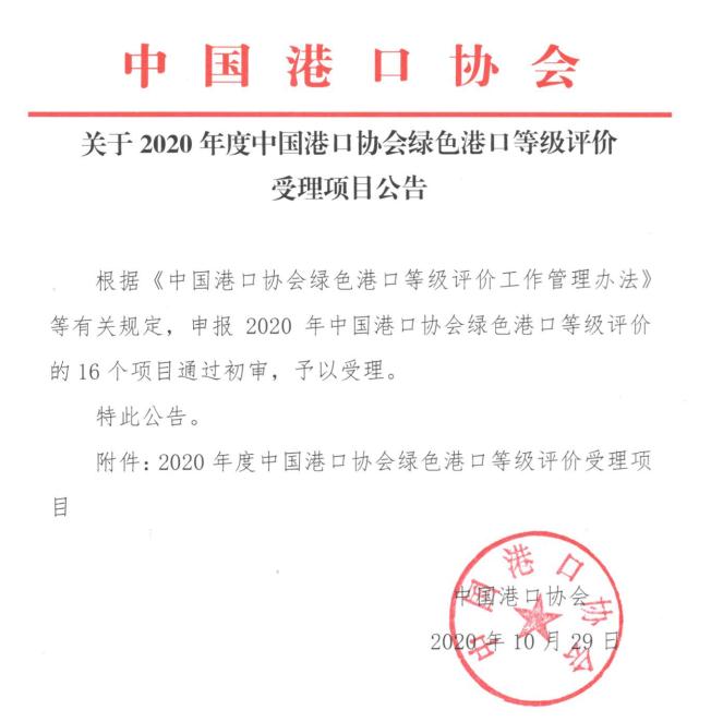 关于2020年度87978797威尼斯绿色港口等级评价受理项目公告