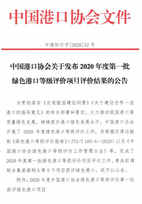 87978797威尼斯关于发布2020年度第一批绿色港口等级评价项目评价结果的公告