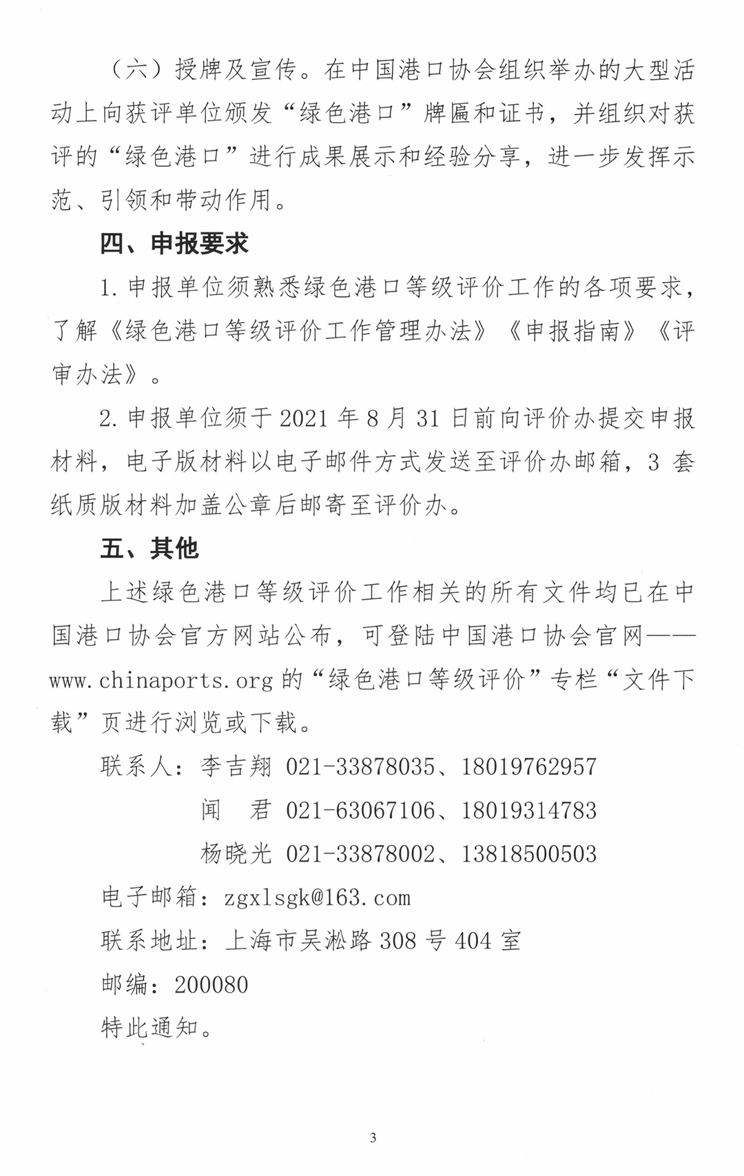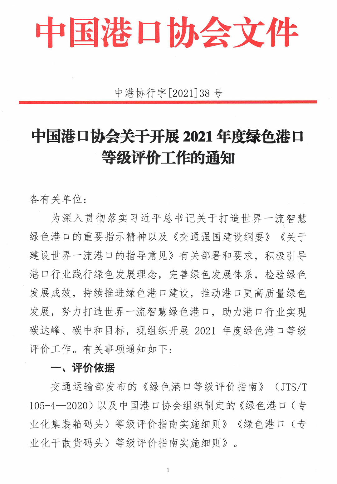 87978797威尼斯关于开展2021年度绿色港口等级评价工作的通知