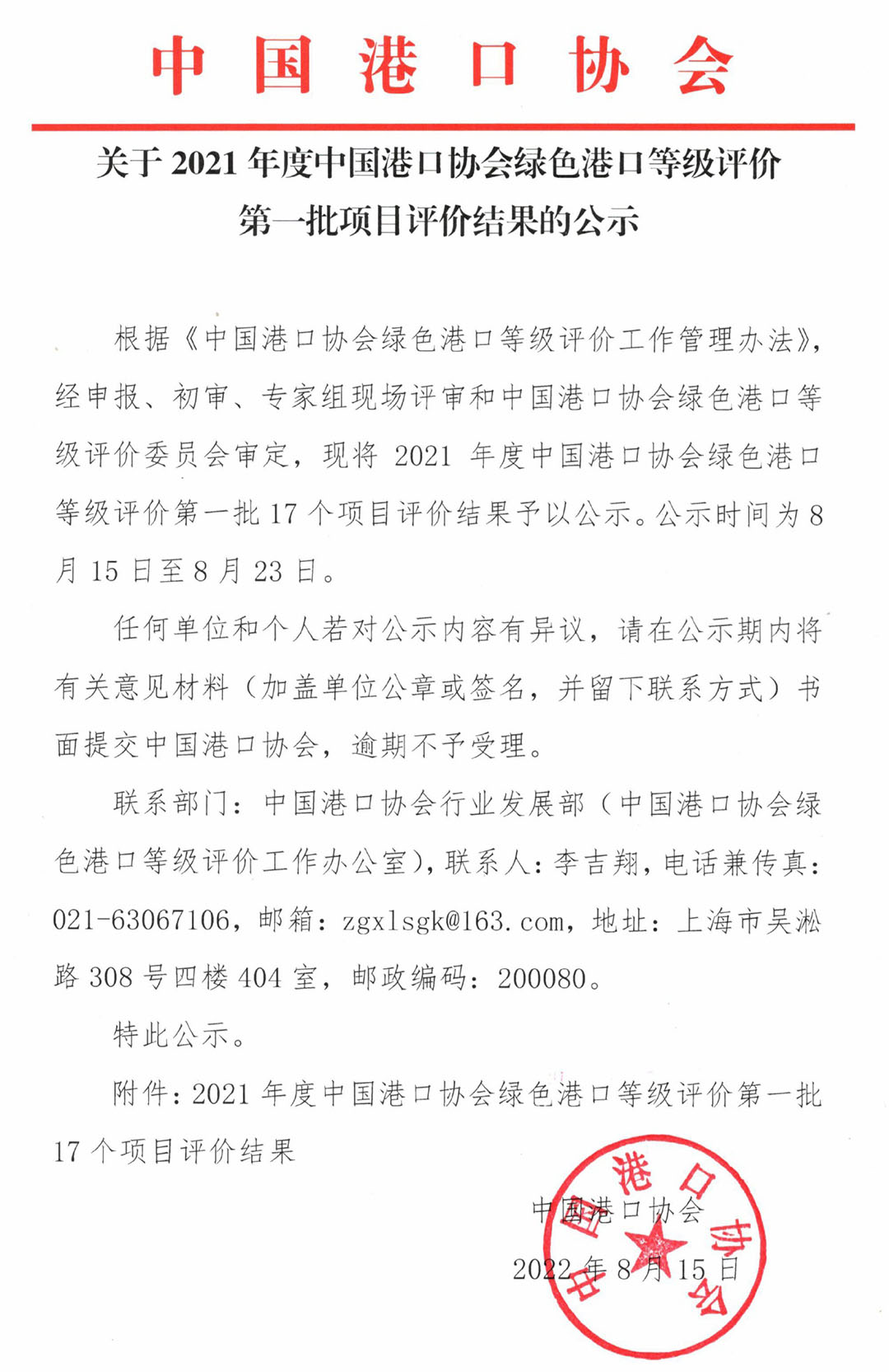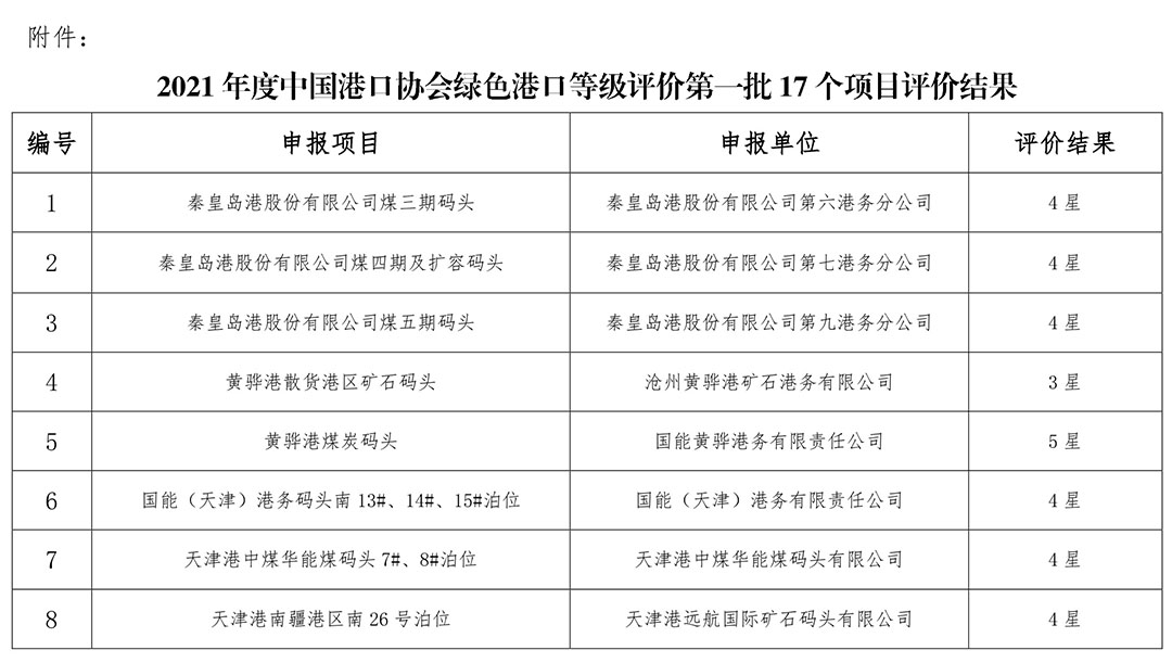 关于2021年度87978797威尼斯绿色港口等级评价第一批项目评价结果的公示