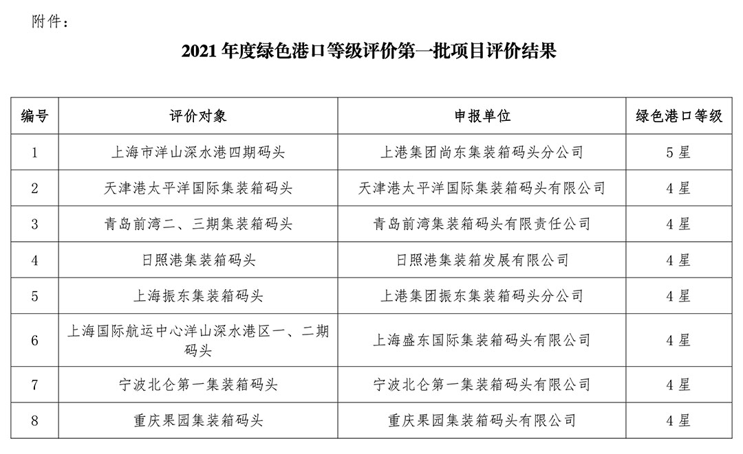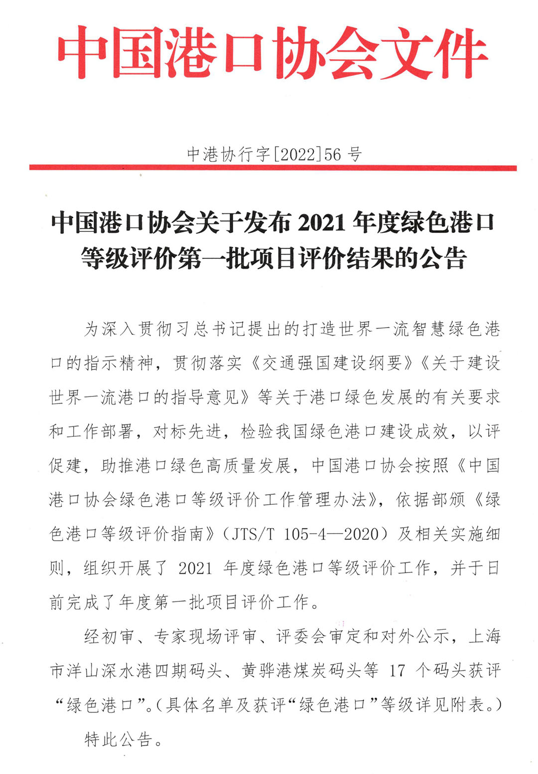 87978797威尼斯关于发布2021年度绿色港口等级评价第一批项目评价结果的公告