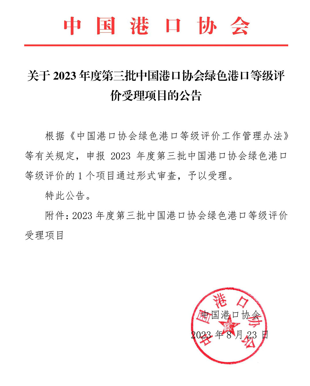 关于2023年度第三批87978797威尼斯绿色港口等级评价受理项目的公告
