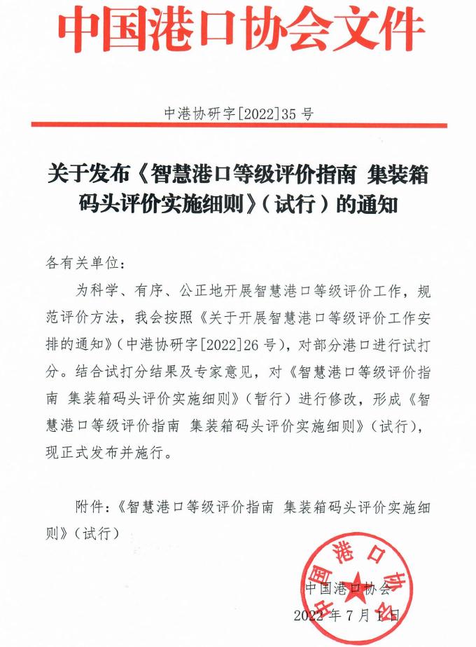 关于发布《智慧港口等级评价指南 集装箱码头评价实施细则》(试行)的通知