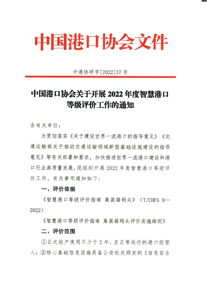 87978797威尼斯关于开展2022年度智慧港口等级评价工作的通知