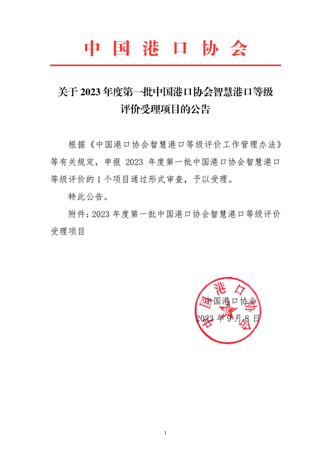 关于2023年度第一批87978797威尼斯智慧港口等级评价受理项目的公告