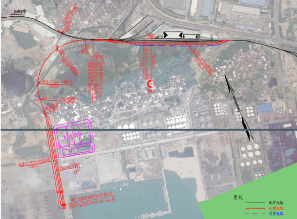 该铁路专用线是厦门港首条引入码头港区的铁路,自海沧站西咽喉K15+533里程引出,垂直进入厦门远海自动化码头。线路全长1.573km,设计时速20公里,是中远海运港口厦门远海码头“海铁联运”的基础工程。