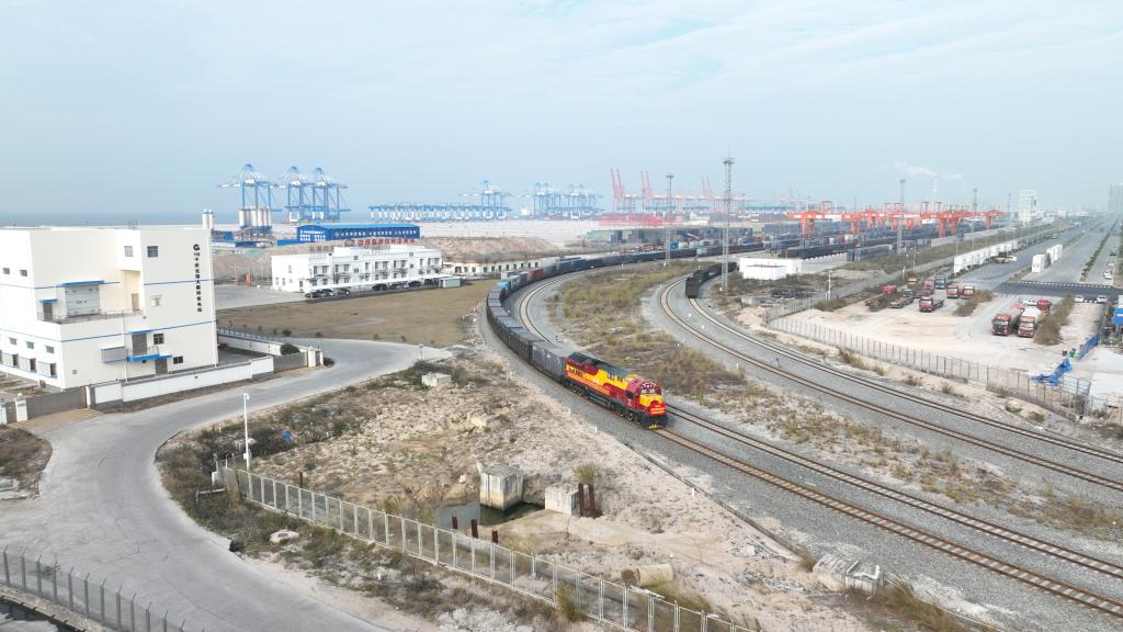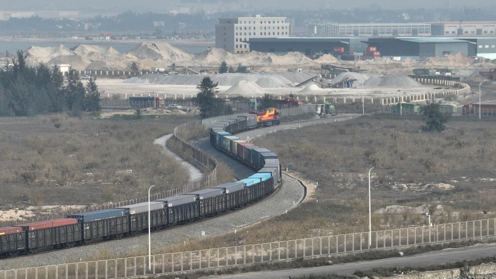 2023年首趟西部陆海新通道铁海联运年货班列x9574次列车从广西钦州发出。(受访者供图)