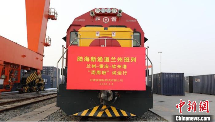 图为2020年年初西部陆海新通道班列兰州—重庆—钦州港“周周班”正式试运行。(资料图)甘肃(兰州)国际陆港供图