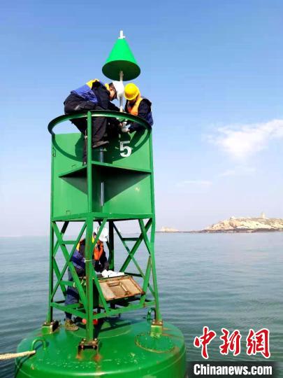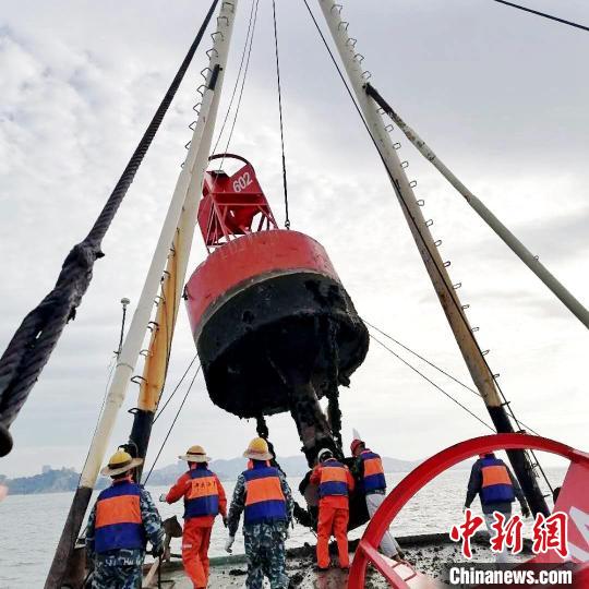 东海航海保障中心航标作业人员开展航标起吊养护作业。郑徐婧 摄