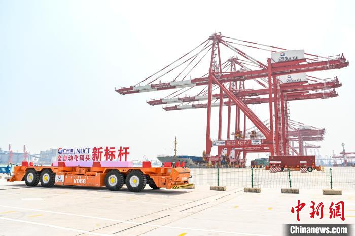 南沙四期全自动化码头当天正式投入运行。该码头是全球首个江海铁多式联运全自动化码头,在技术方面创多项“全球之最”:全球首个江海铁多式联运全自动化码头、全球最大的水平布局全自动化码头、全球首创北斗导航无人驾驶智能导引车……