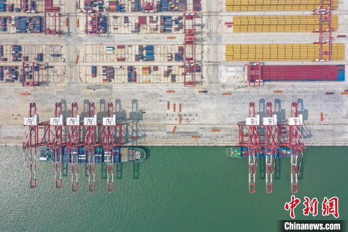 北斗导航无人驾驶智能导引车在运送集装箱 陈骥旻 摄