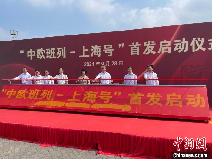 中新网上海9月28日电 (记者 姜煜康玉湛)“中欧班列——上海号”第一趟列车28日正式发车,上海市人民政府宗明副市长、张为副市长等参加了在铁路闵行货运站举行的发车仪式。