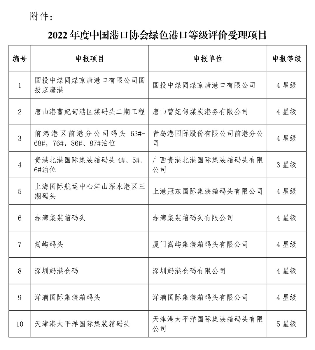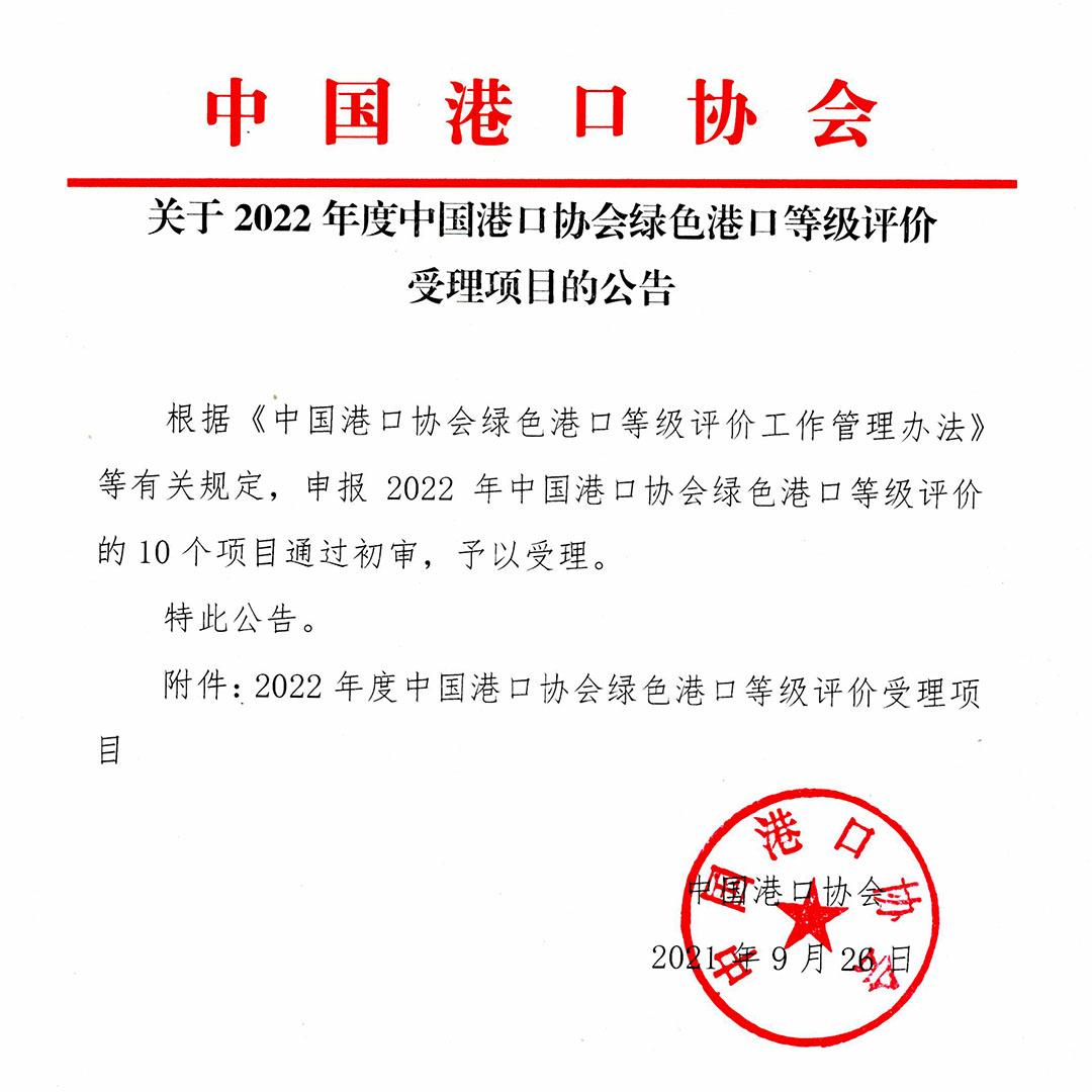 关于2022年度87978797威尼斯绿色港口等级评价受理项目的公告