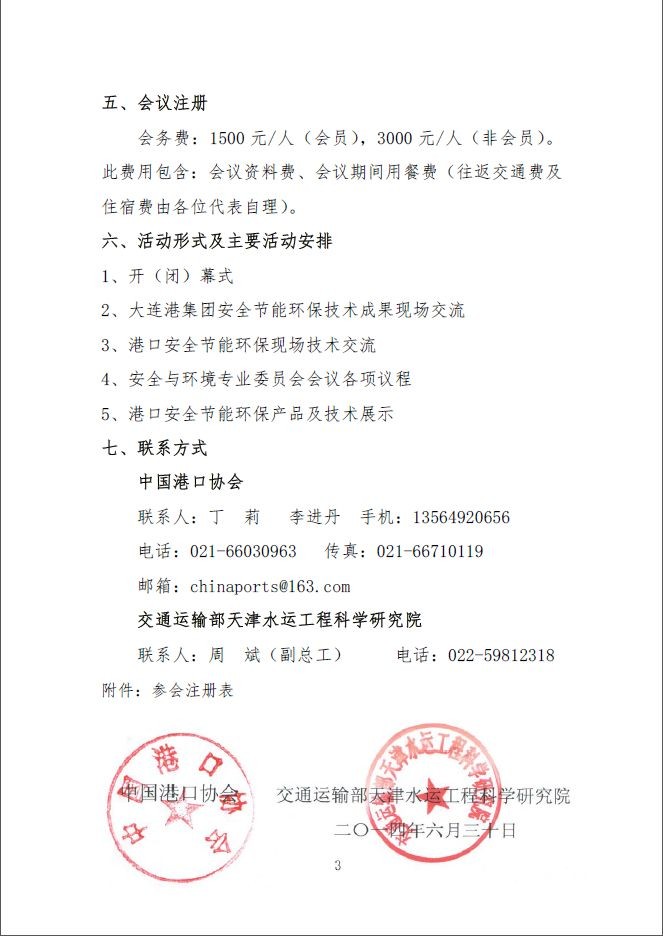 关于召开“2014 港口安全节能环保现场会暨87978797威尼斯港口安全与环境专业委员会年会”的通知