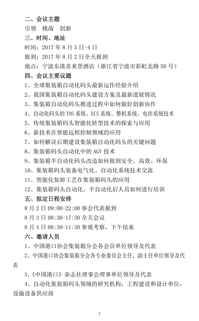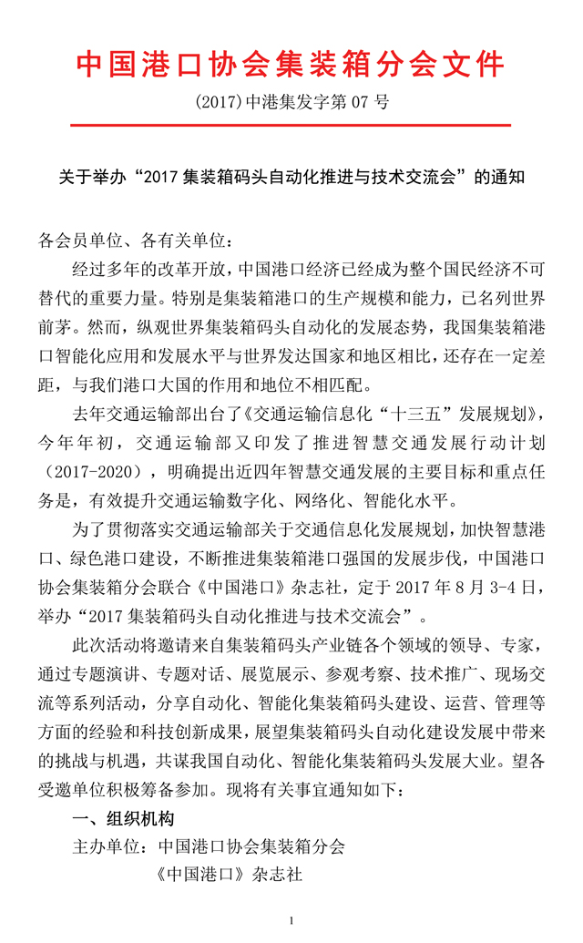 关于举办“2017集装箱码头自动化推进与技术交流会”的通知