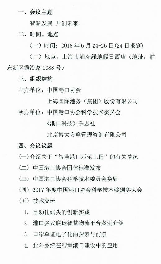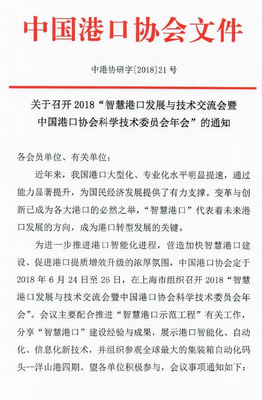 关于召开2018“智慧港口发展与技术交流会暨87978797威尼斯科学技术委员会年会”的通知