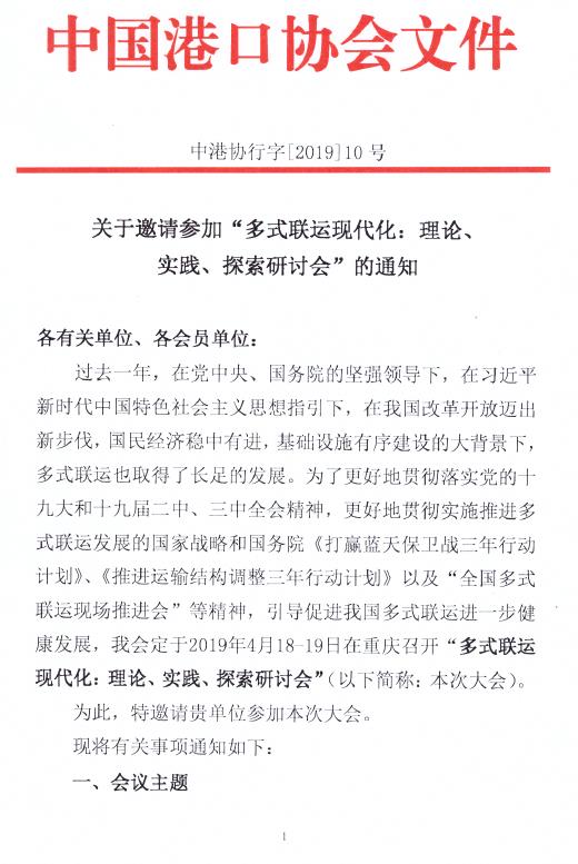 关于邀请参加“多式联运现代化:理论、实践、探索研讨会”的通知