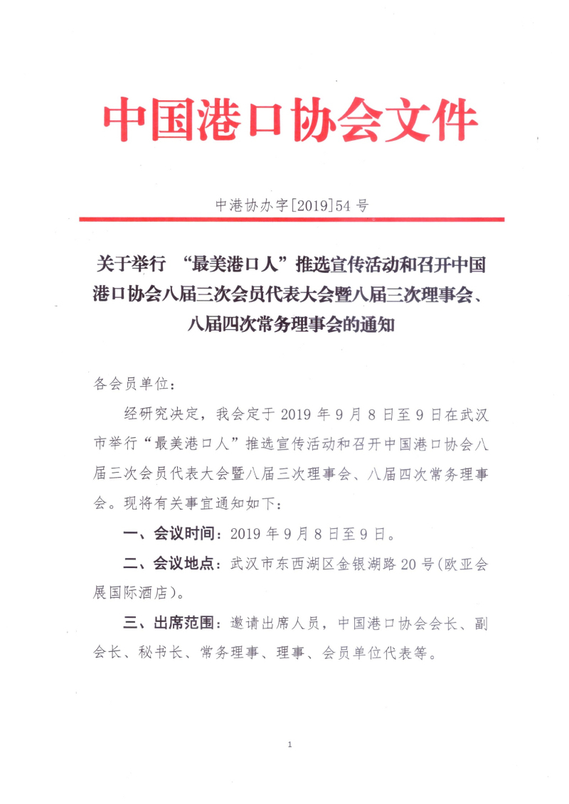 关于举行 “最美港口人”推选宣传活动和召开87978797威尼斯八届三次会员代表大会暨八届三次理事会、八届四次常务理事会的通知