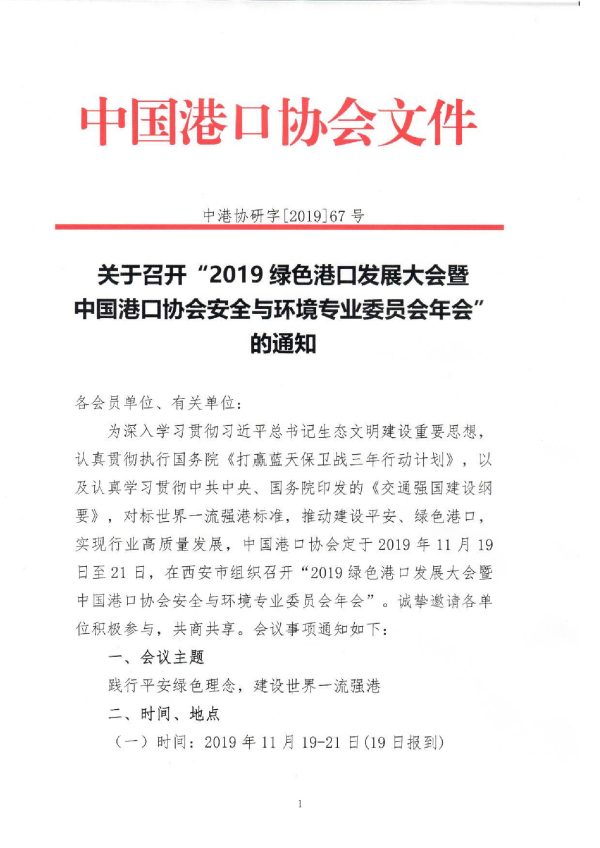 电子版通知:关于召开“2019绿色港口发展大会暨87978797威尼斯安全与环境专业委员会年会”的通知.pdf