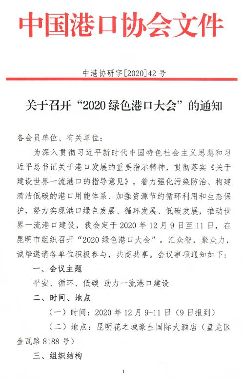 关于召开“2020绿色港口大会”的通知