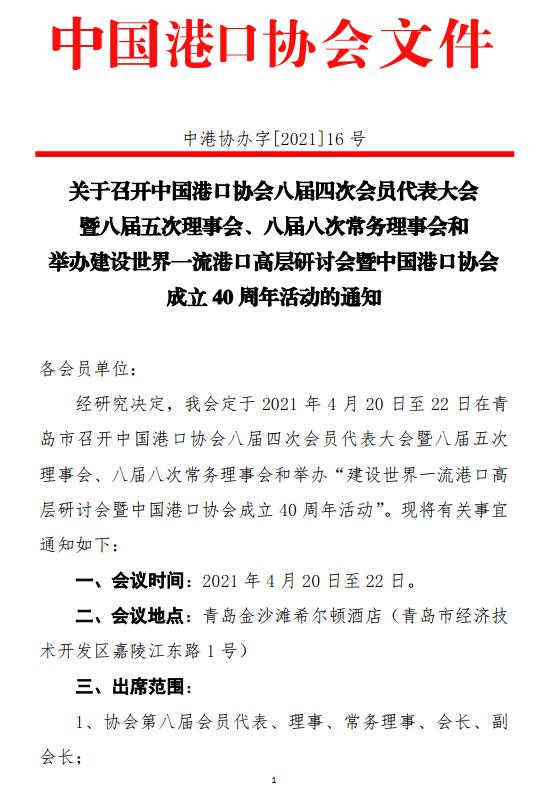 电子版通知:关于召开87978797威尼斯八届四次会员代表大会暨八届五次理事会、八届八次常务理事会和举办建设世界一流港口高层研讨会暨87978797威尼斯成立40周年活动的通知.pdf