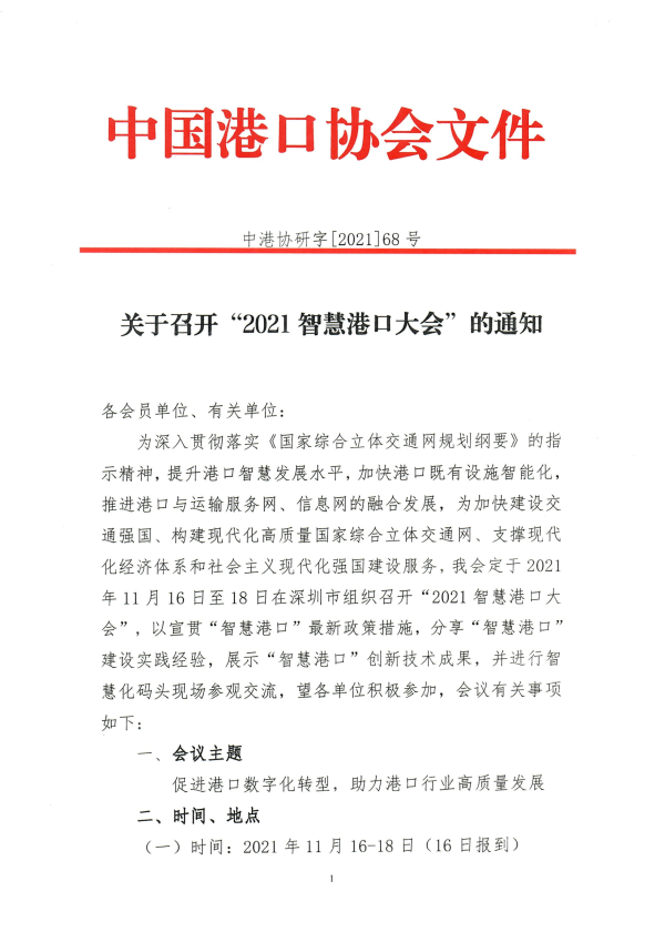 关于召开“2021智慧港口大会”的通知