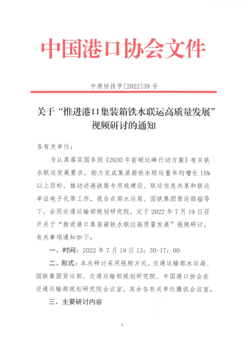 关于“推进港口集装箱铁水联运高质量发展”视频研讨的通知