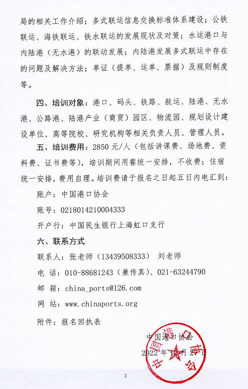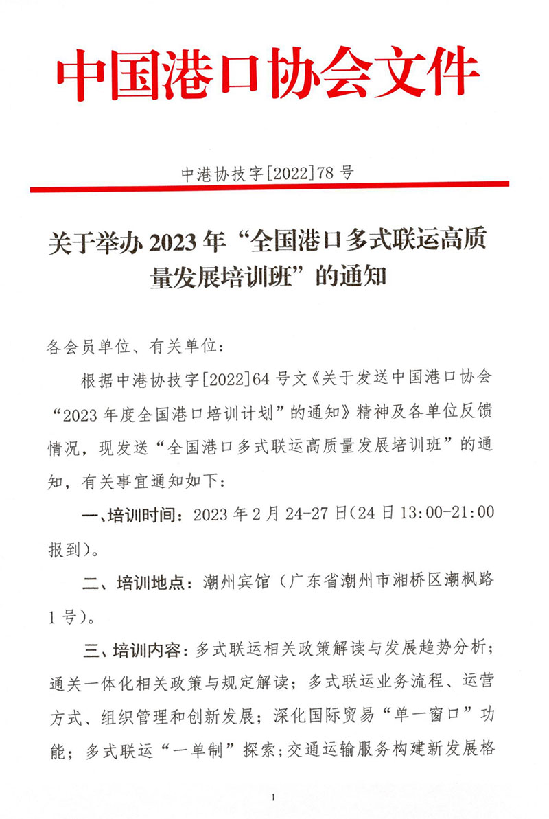 关于举办2023年“全国港口多式联运高质量发展培训班”的 通知