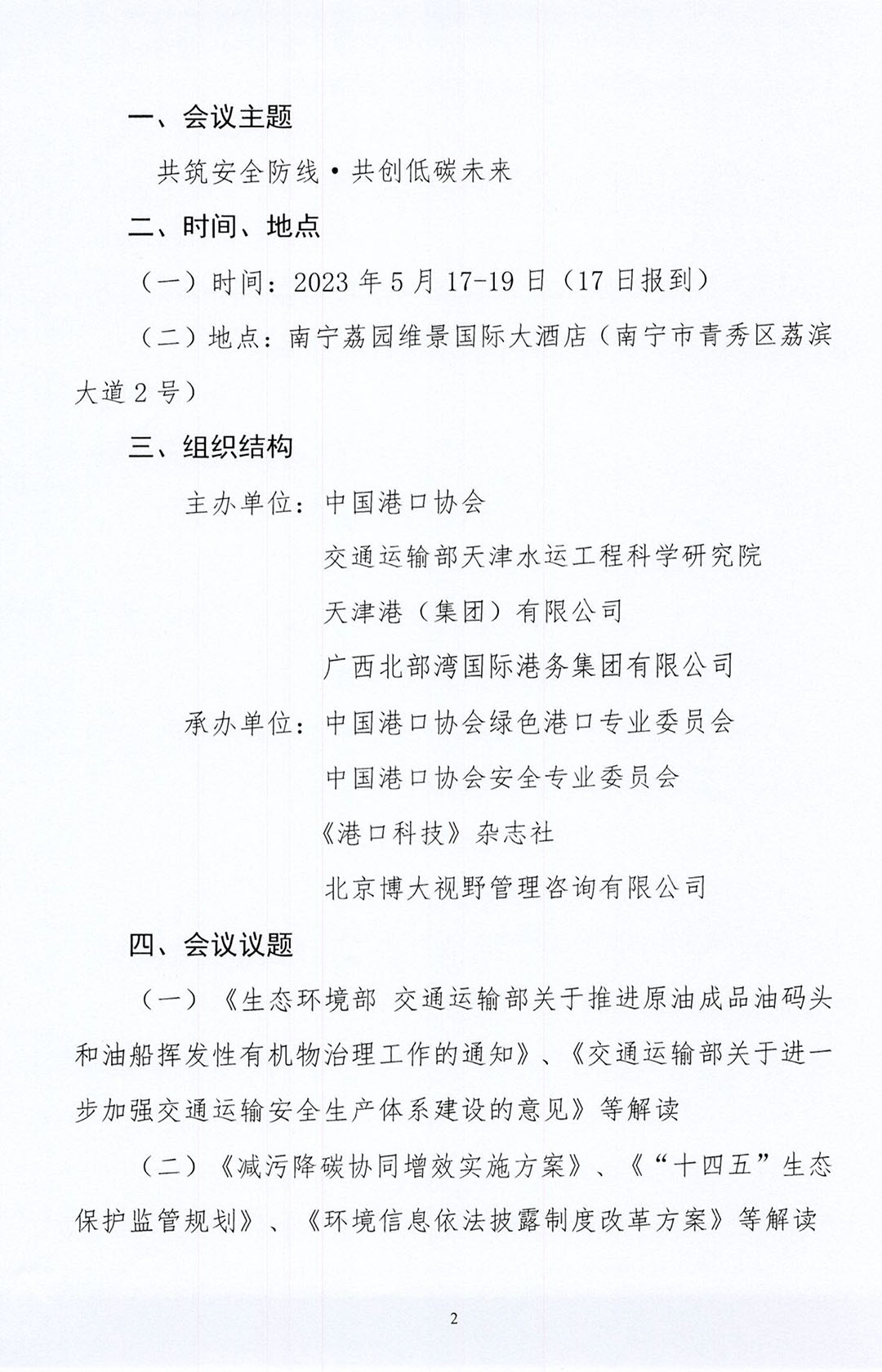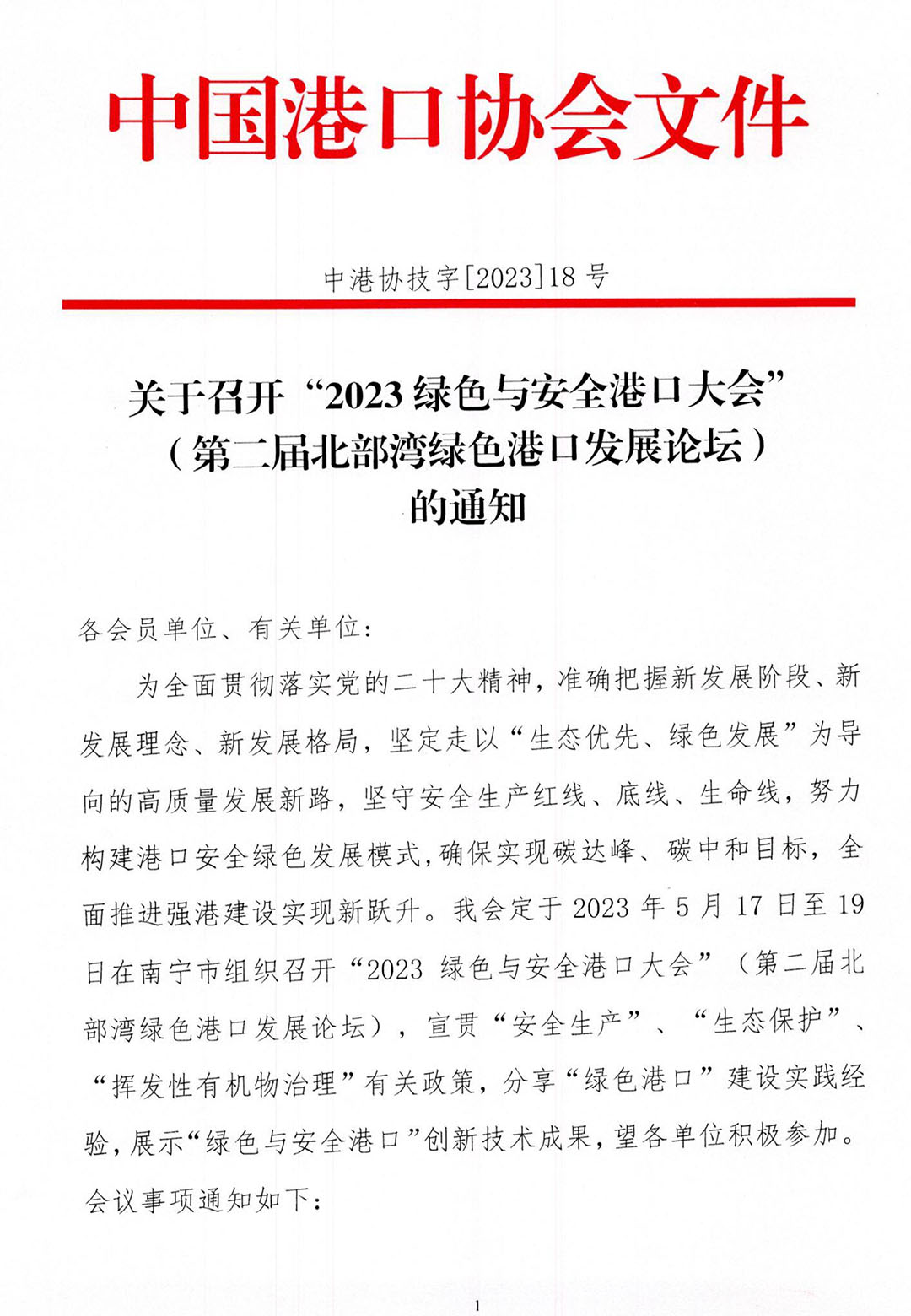 关于召开“2023绿色与安全港口大会”(第二届北部湾绿色港口发展论坛)的通知