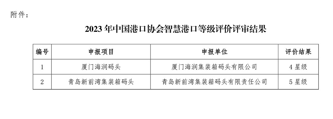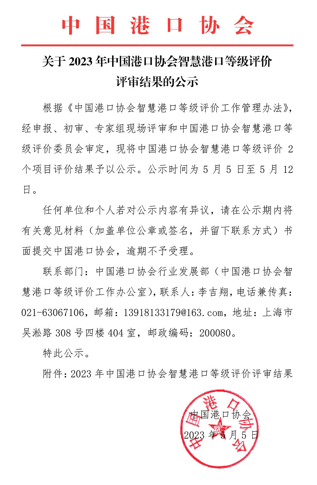 关于2023年87978797威尼斯智慧港口等级评价评审结果的公示