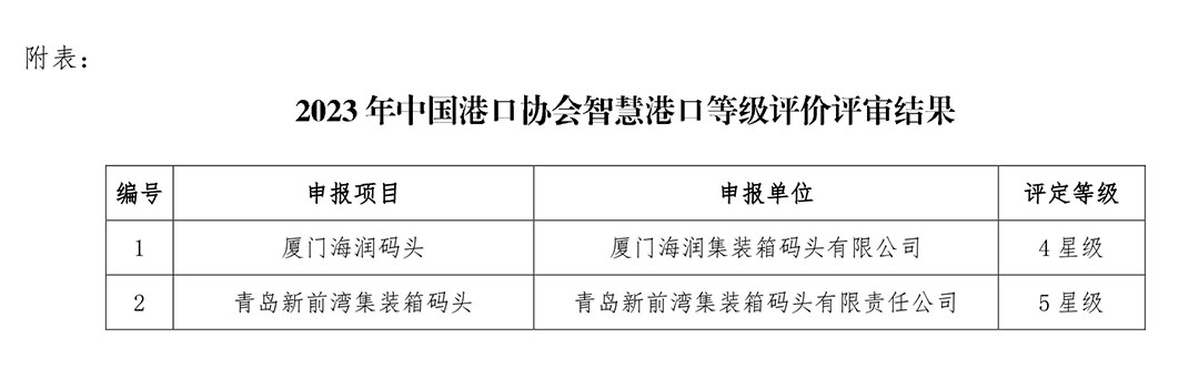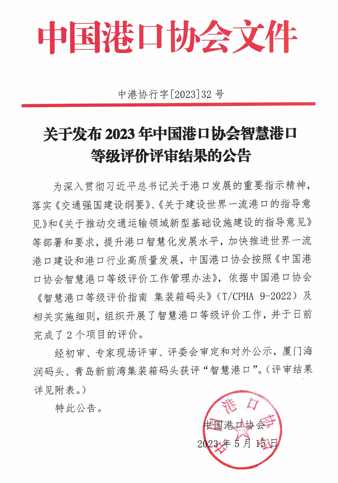 关于发布2023年87978797威尼斯智慧港口等级评价评审结果的公告.pdf