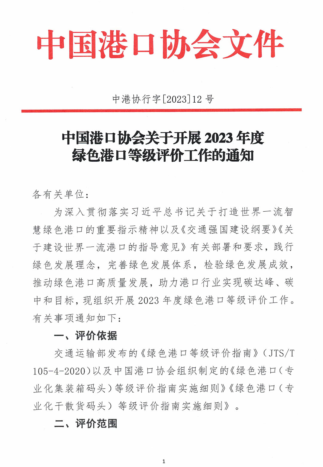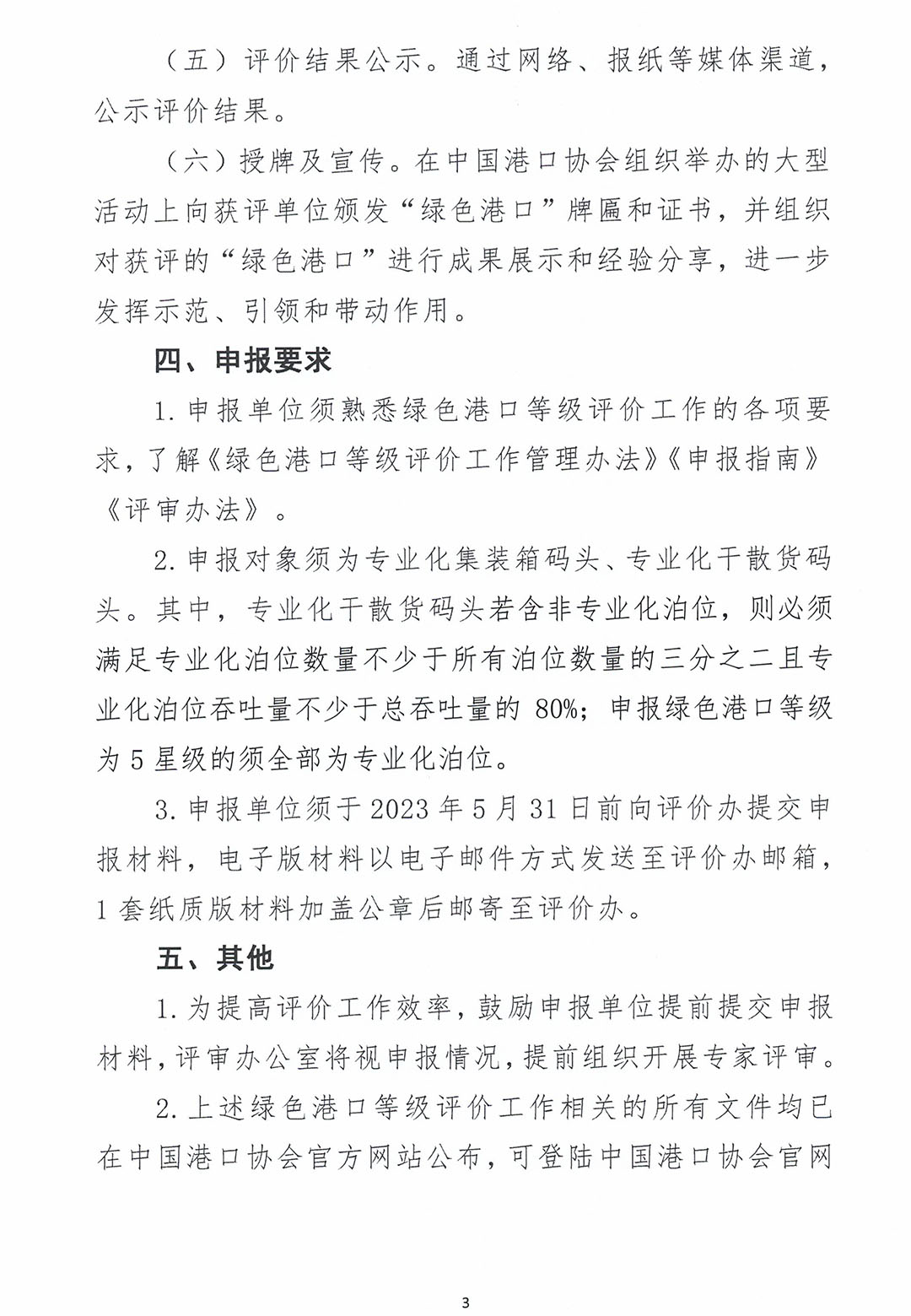 通知原文:87978797威尼斯关于开展2023年度绿色港口等级评价工作的通知.pdf