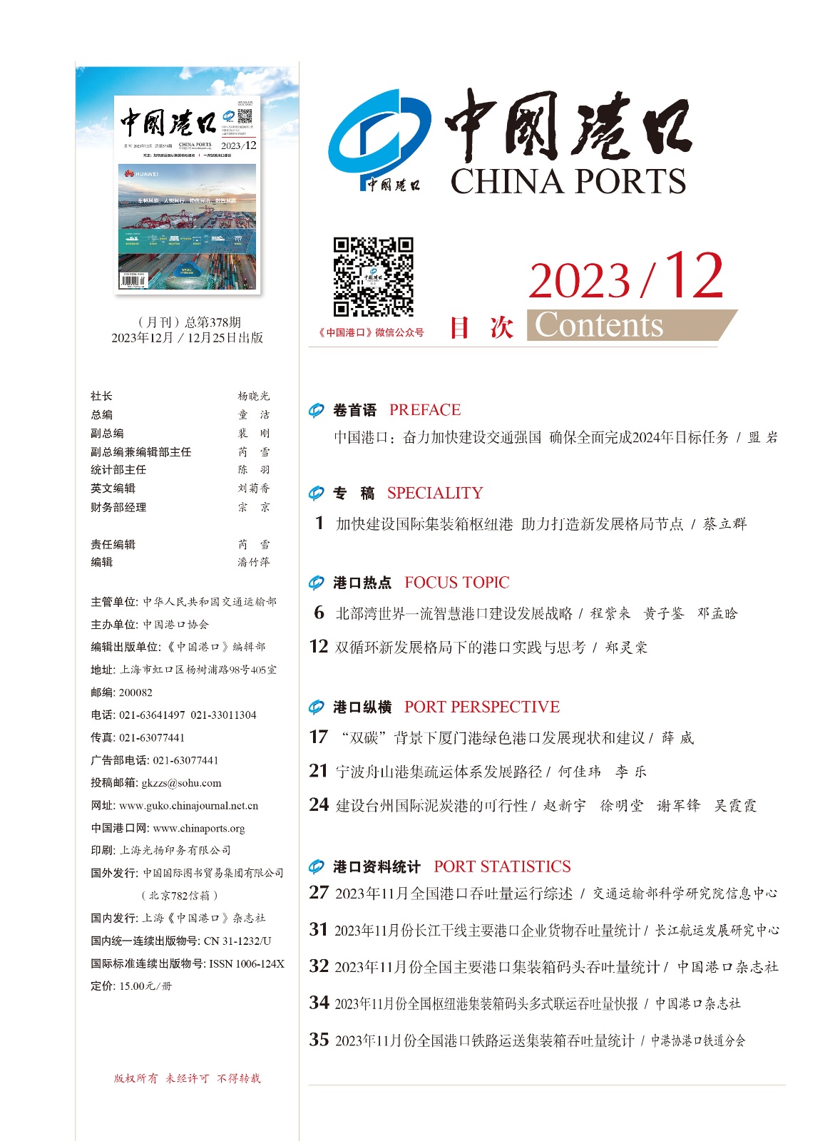 《中国港口》杂志2023年第12期目录