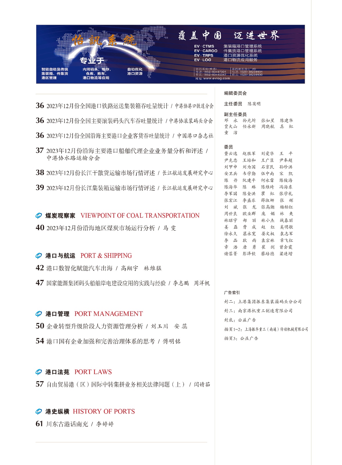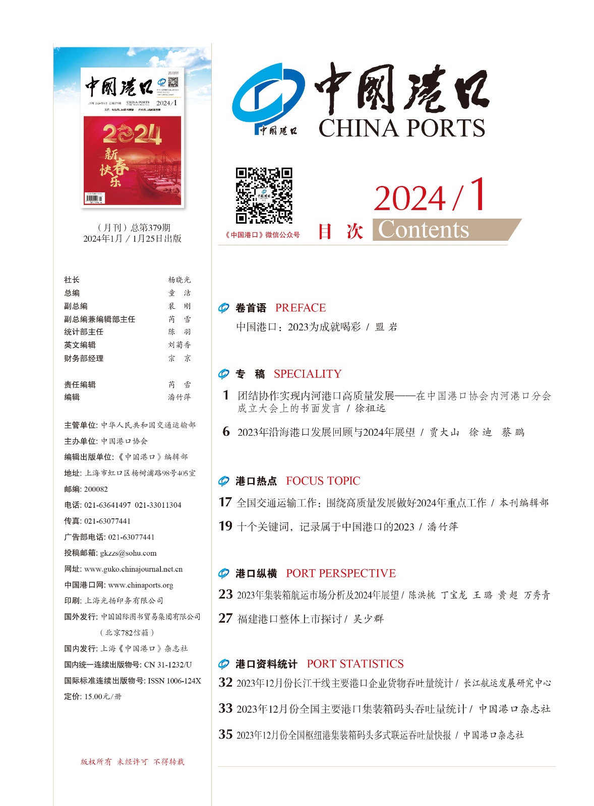 《中国港口》杂志2024年第1期目录