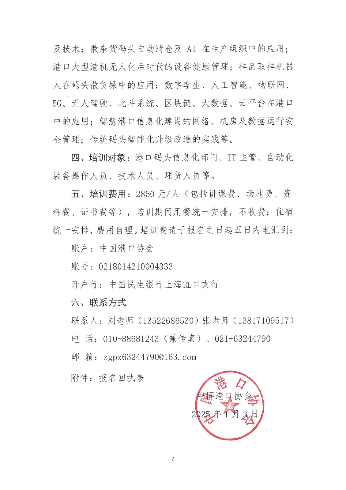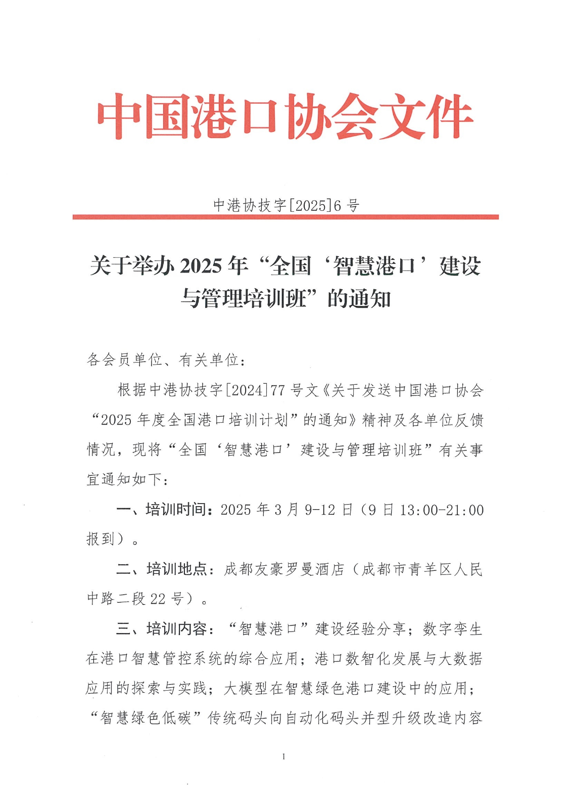 关于举办2025年“全国‘智慧港口’建设与管理培训班”的通知