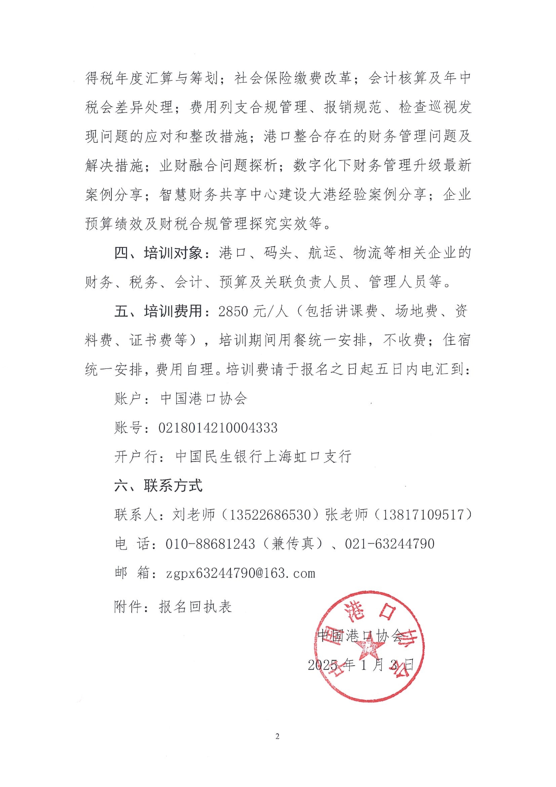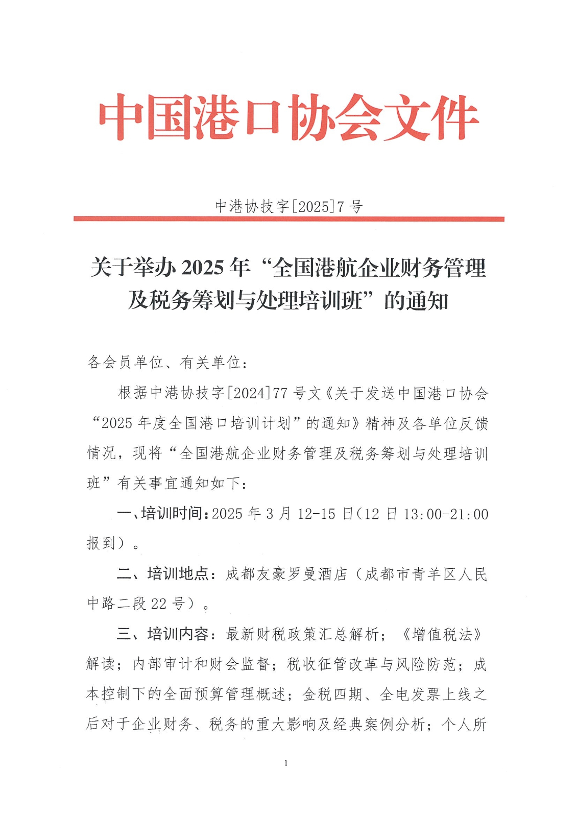 关于举办2025年“全国港航企业财务管理及税务筹划与处理培训班”的通知